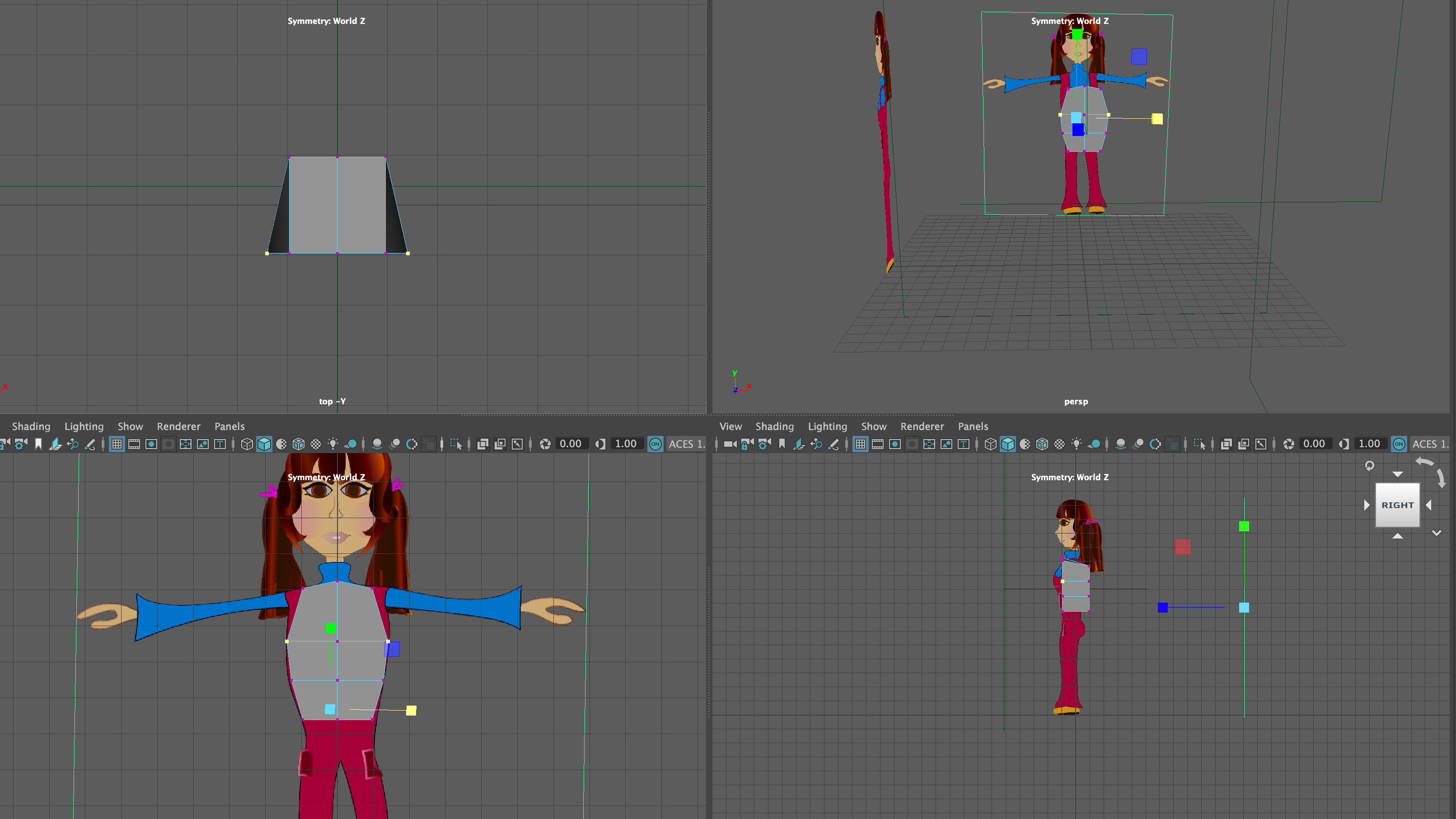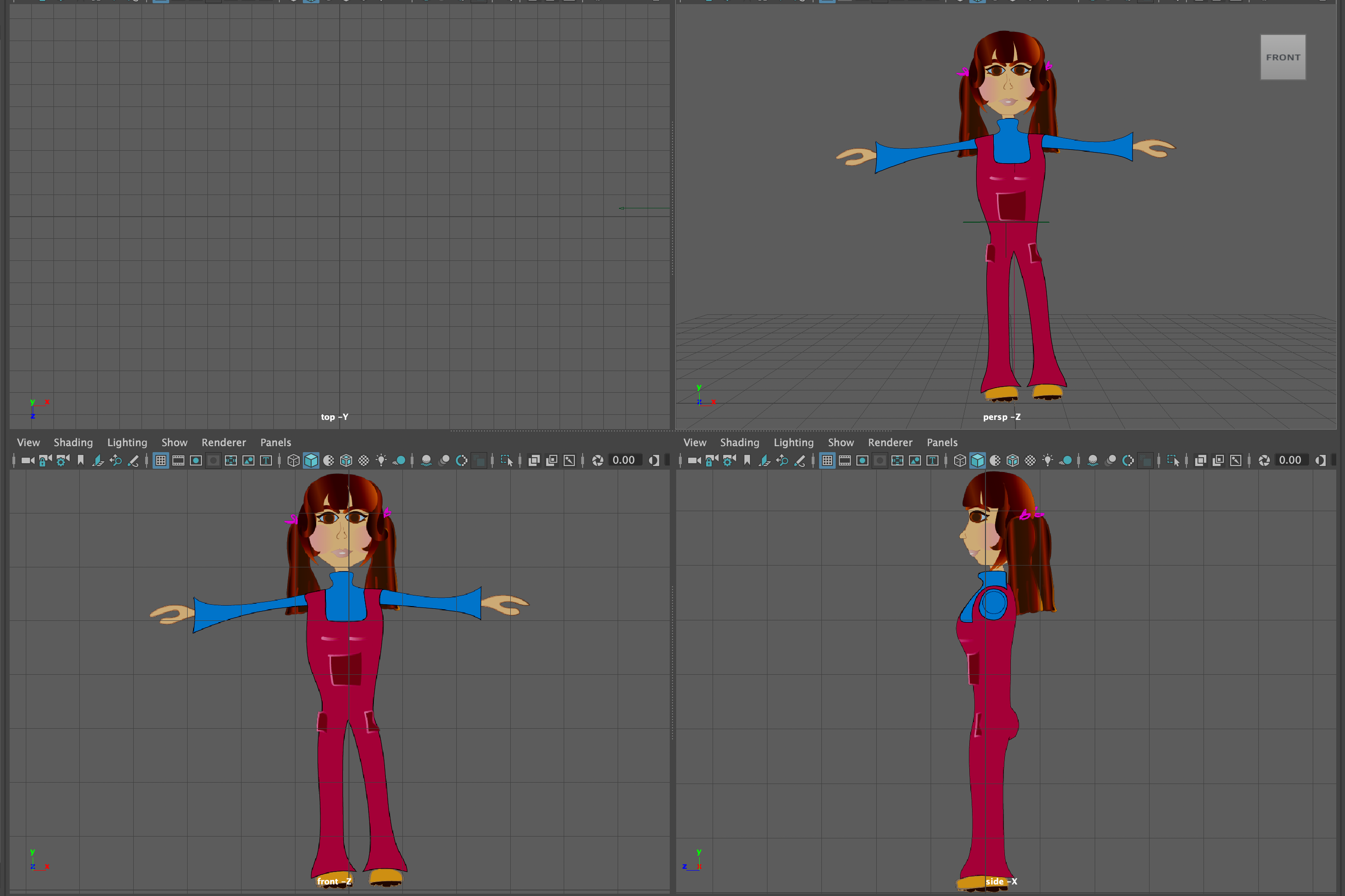 One of the important parts of this process when modelling a character, is to always have a front and side view of your reference image, to aline your image planes with the model you are creating. This way you can keep referencing back and forth, if need be.