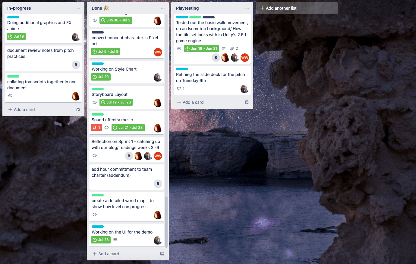 Here is a preview of our Trello board which shows the progress we have made so far with our prototype for our game Keep it Burning.